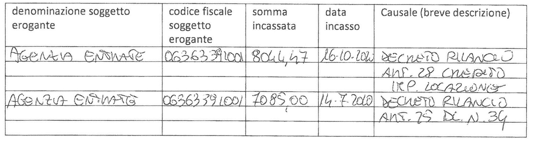 Con riferimento agli obblighi di trasparenza relativi agli aiuti pubblici L 124/2017 - art. 1 com. 125-129, si pubblica la tabella dei contributi ricevuti per l'anno 2020 da parte dell'Impresa CAPPELLO ROSA & NICASTRO GIOVANNI SOCIETA' AGRICOLA SEMPLICE con CF 01171890880