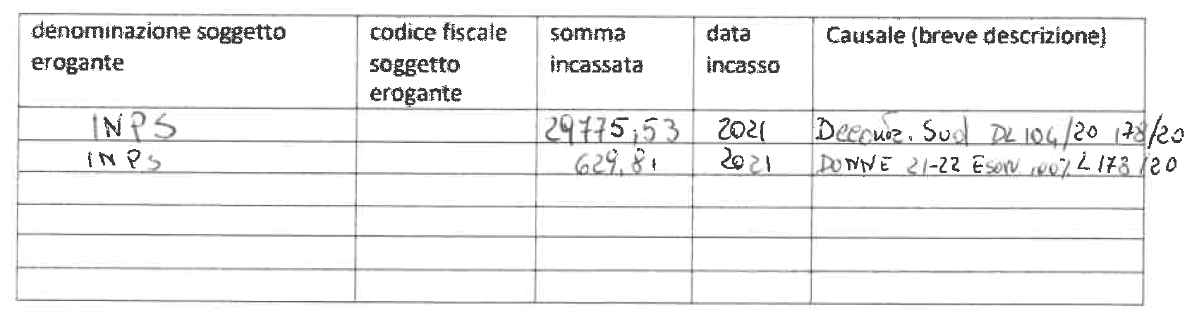 Con riferimento agli obblighi di trasparenza relativi agli aiuti pubblici L 124/2017 - art. 1 com. 125-129, si pubblica la tabella dei contributi ricevuti per l'anno 2021 da parte dell'Impresa ROCCASALVO SABINA con CF RCCSBN63E62F258O